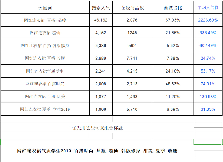接下来就直接进入实操,上面我们找到一个目标词【网红连衣裙 百搭 显瘦】