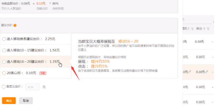 没有展现的话再加价15%,一个小时观察一次,如果有些词出价很低也能排名靠前,那么这个词就直接把位置顶上去。