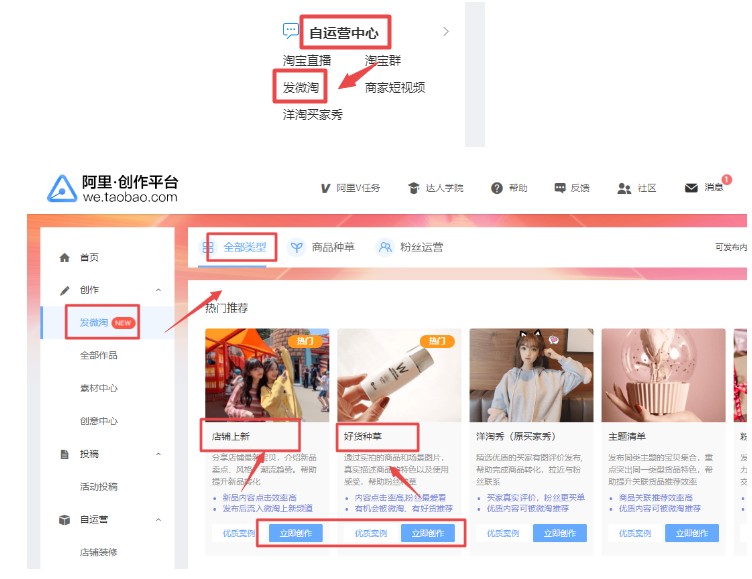 在这里面我们就可以发布微调预上新,新品商品,商品种草都可以,吸引买家下单